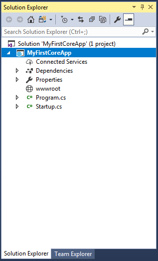 The following is a default project structure when you create an empty ASP.NET Core application in Visual Studio.