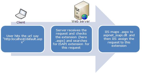 Step 1 : When the Browser sends a request to the web server and the server receives the the request it first checks the extension to determine whether or not it is ISAPI because this request can only be handled by the ISAPI extension; if the extension is different then the request is handled by the server itself.