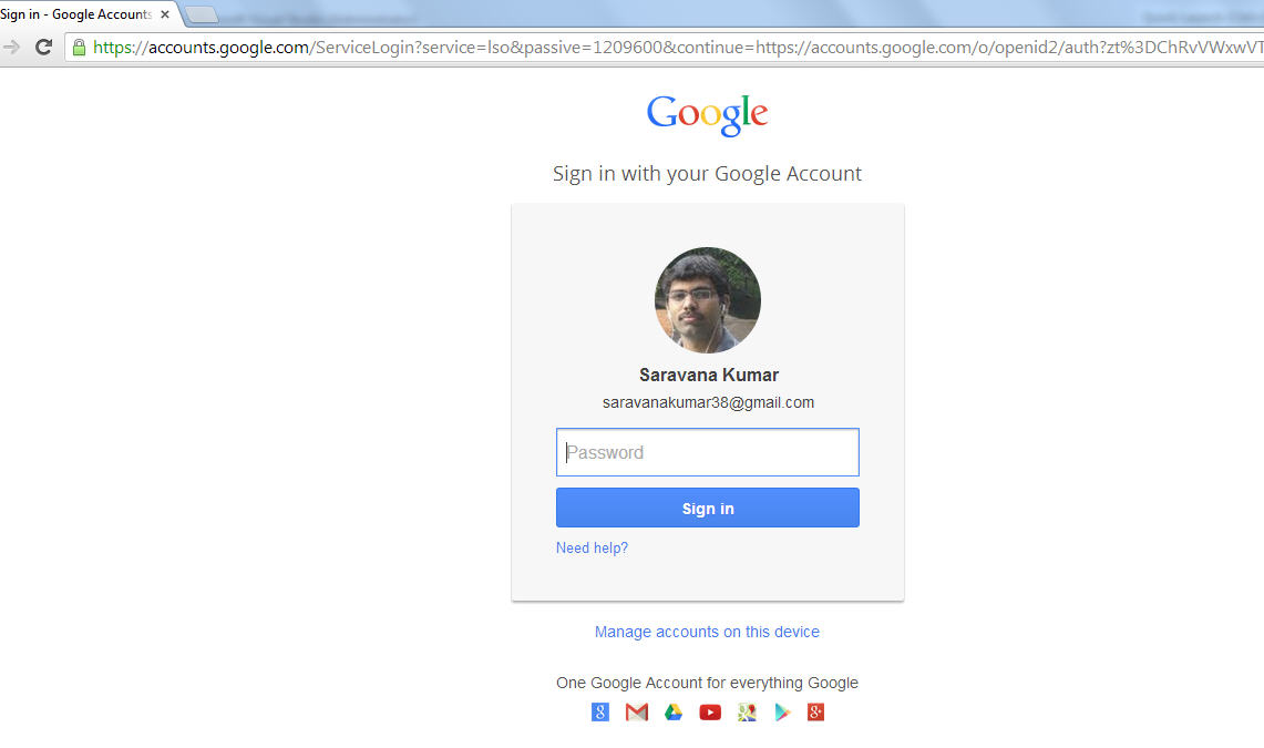 Click on “Google” button will display the external login screen, where you need to provide your Google credential